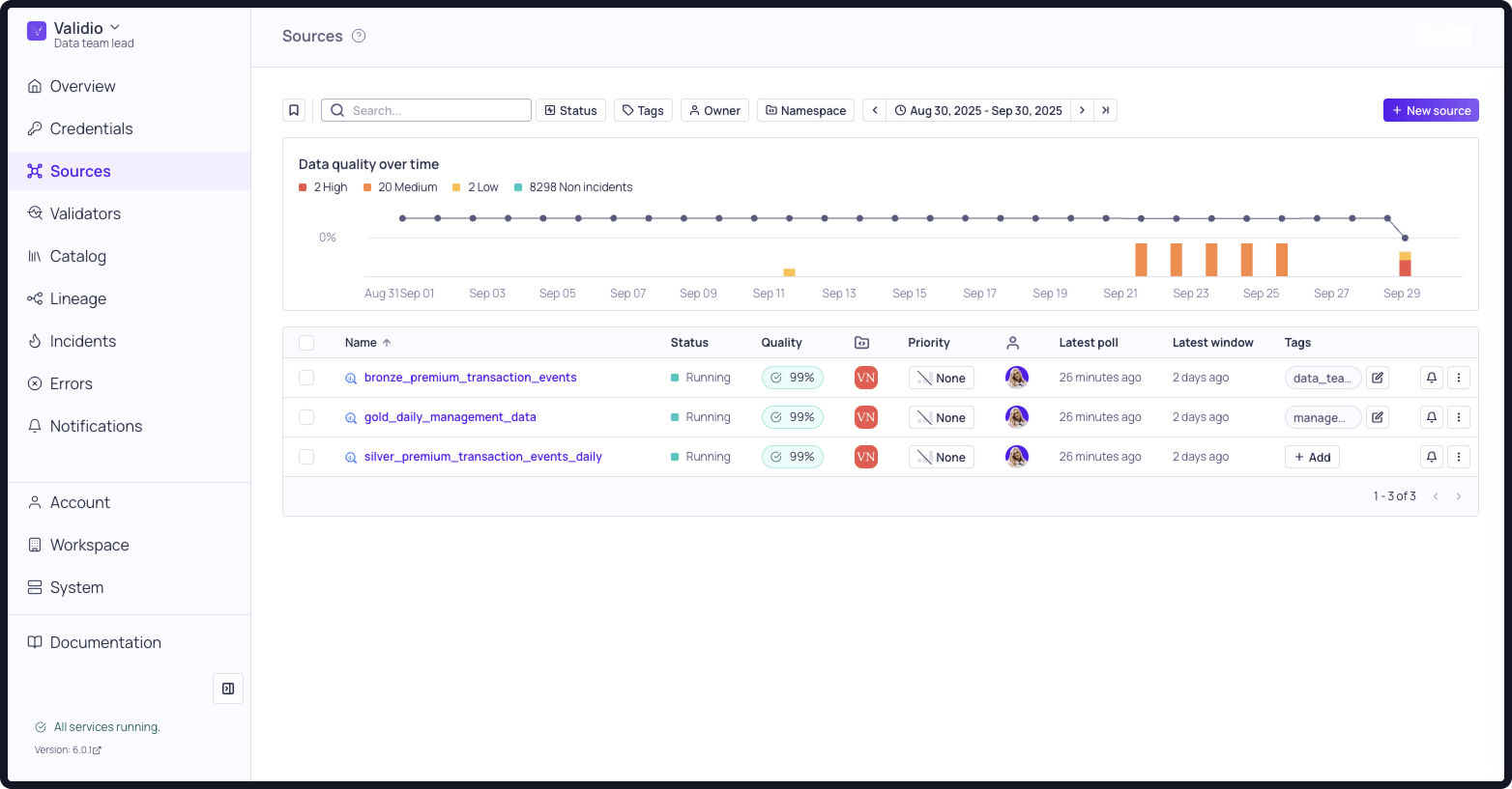 The Validio 6.0 release focuses on making data quality and incident management more precise and actionable, with updates to prioritization and error handling.